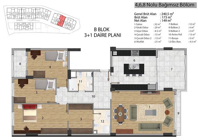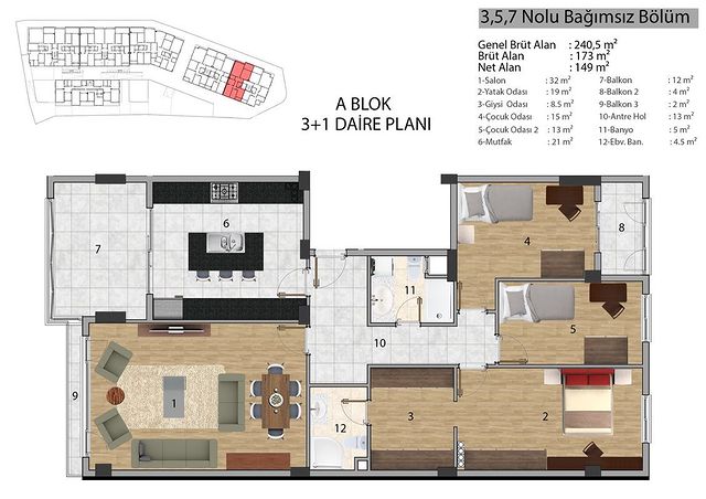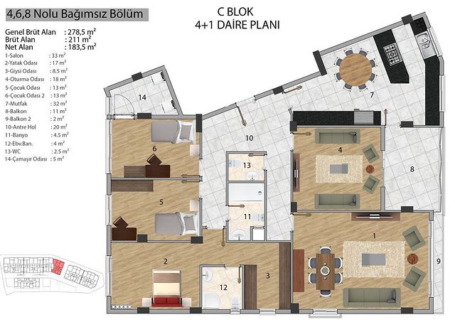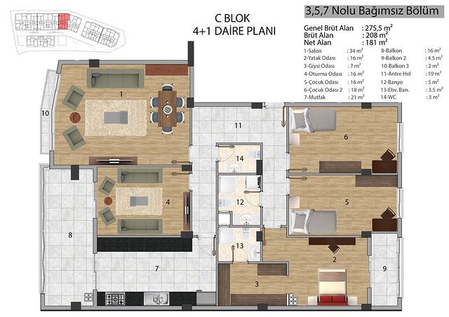 2+1-3+1-4+1 ve Dublex daireleriyle sizlere farklı seçenekler sunuyor.